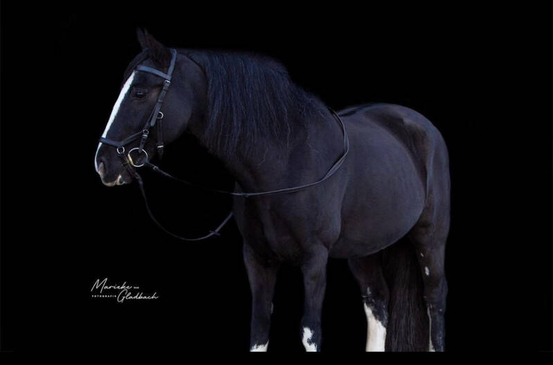 Hij is altijd enthousiast, gaat graag mee om te rijden, maar ook heel graag naar de paddock. Echt een vrolijke knuffel en de grote vriend van Dwight.